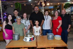 A família do aniversariante, representada pela elegante matriarca Dra. Léa Araújo Saulnier de Pierrelevée, foi um destaque especial na celebração.